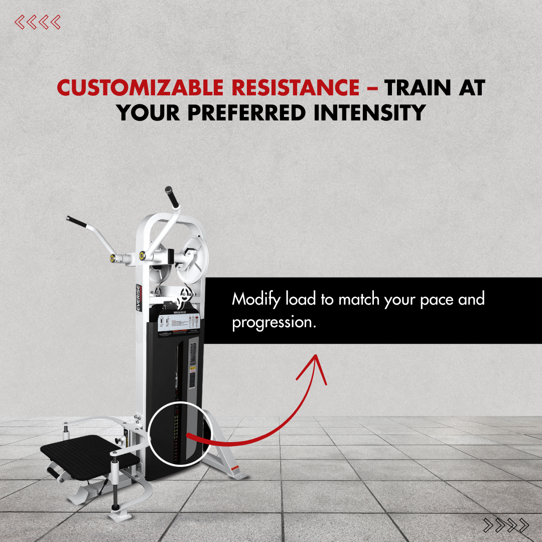 This machine features well-positioned handles and a stable foot platform enhance balance during standing movements. Built with a strong, heavy-duty steel frame, the machine is engineered for durability in commercial gym environments. Overall, it is a versatile addition that maximizes training variety while minimizing floor space requirements.