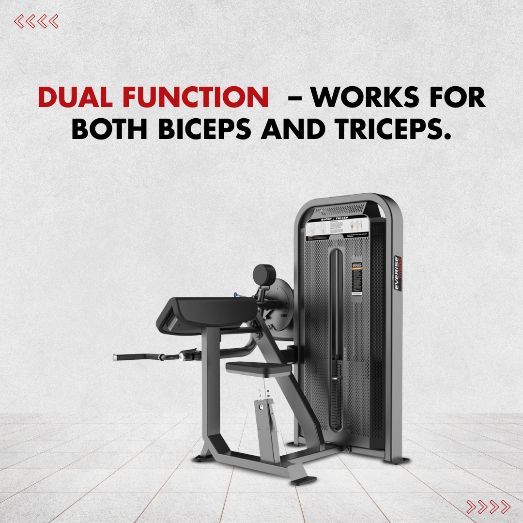 • Dual-Function Design Targets Biceps and Triceps in One Compact Machine