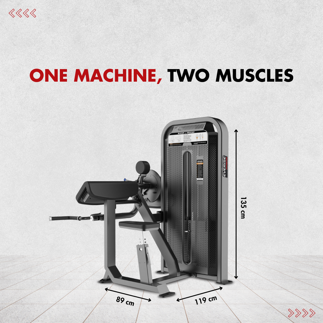 The Bicep/Tricep machine is a dual-action strength station which is made to effectively target both the front and back of your upper arms in one compact station.
