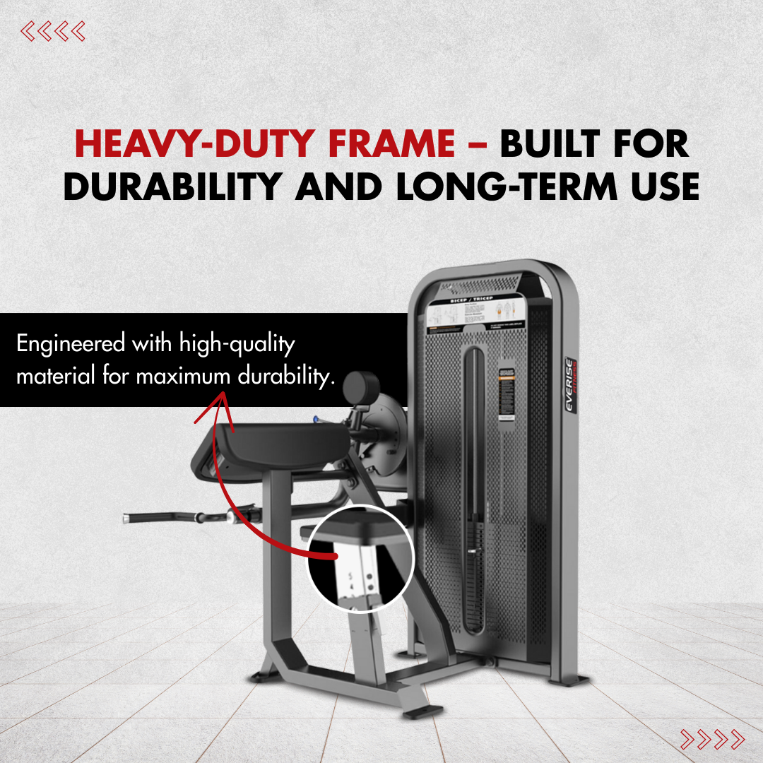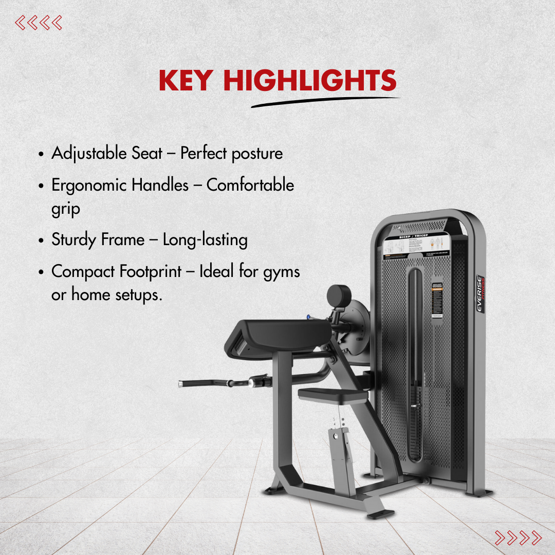 This machine comes with a user-friendly arm pad and adjustable seat height to help align the elbows correctly, reducing strain on the joints and improving overall exercise comfort. This makes the machine suitable for beginners learning proper technique as well as advanced users aiming for targeted arm isolation.