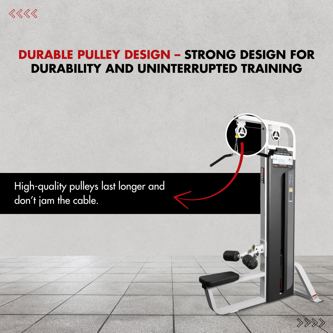 This machine has been built using a strong, premium steel frame engineered for long-term durability in commercial gym environments. The guided vertical pulling motion promotes proper exercise mechanics and controlled movement. This makes the machine suitable for users of all fitness levels, from beginners learning correct form to advanced athletes focusing on muscle growth and strength progression