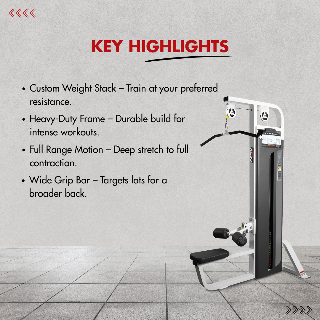 EV7032 (A) Lat Pull Down I Stable Base I Supports Wide and Close Grip I Adjustable Thigh Hold-Down Pads