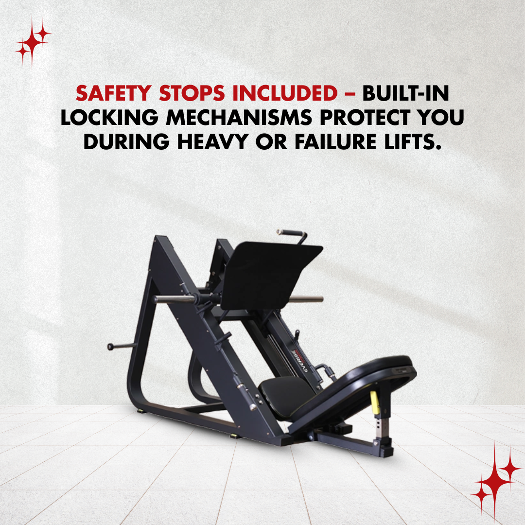 The Leg Press 45 Degree is designed to deliver powerful lower-body training with smooth, controlled motion. Its optimized 45-degree angle enhances leg drive and movement efficiency, allowing users to push naturally while reducing unnecessary strain on the joints. This angled design supports better force transfer, making each rep more effective for strength development.