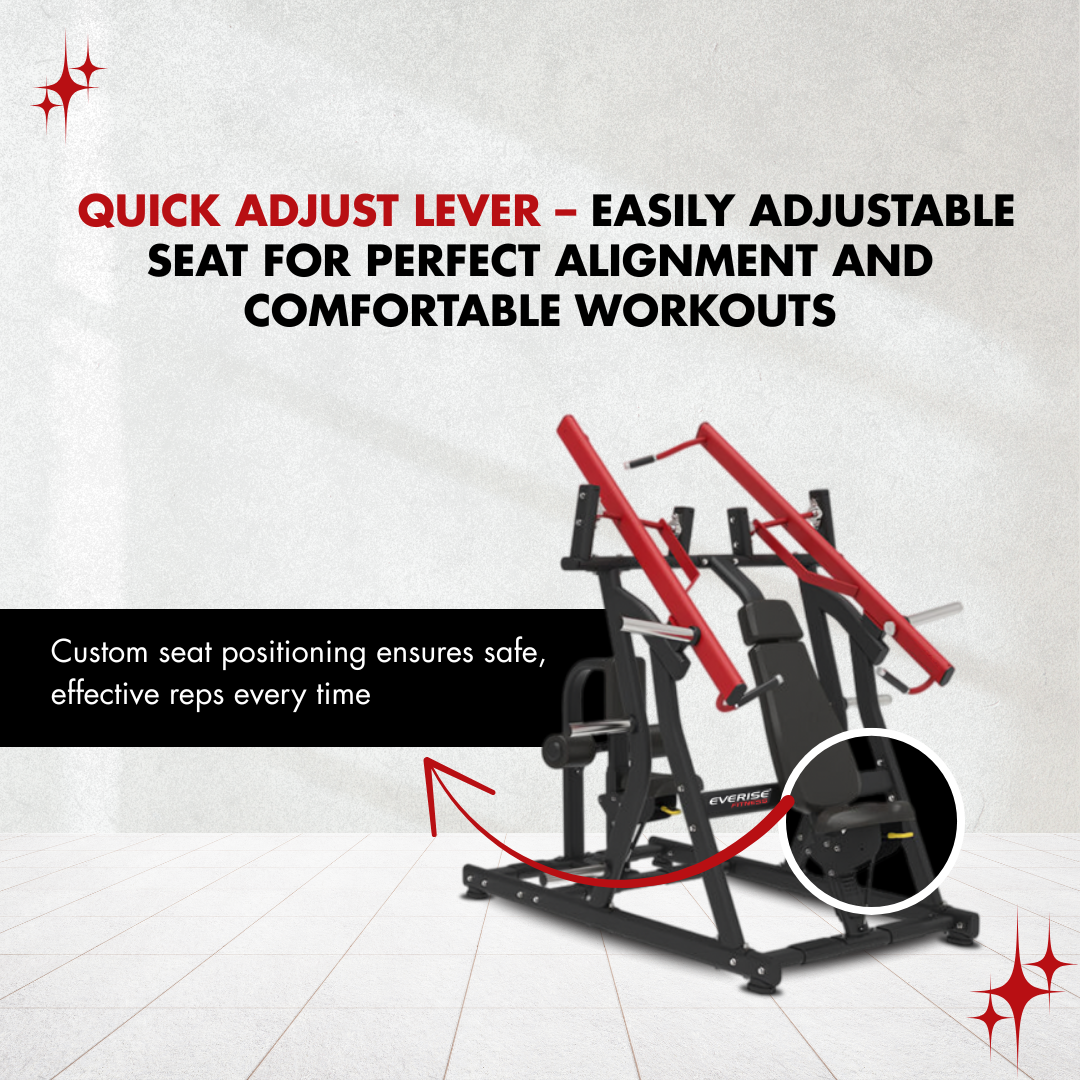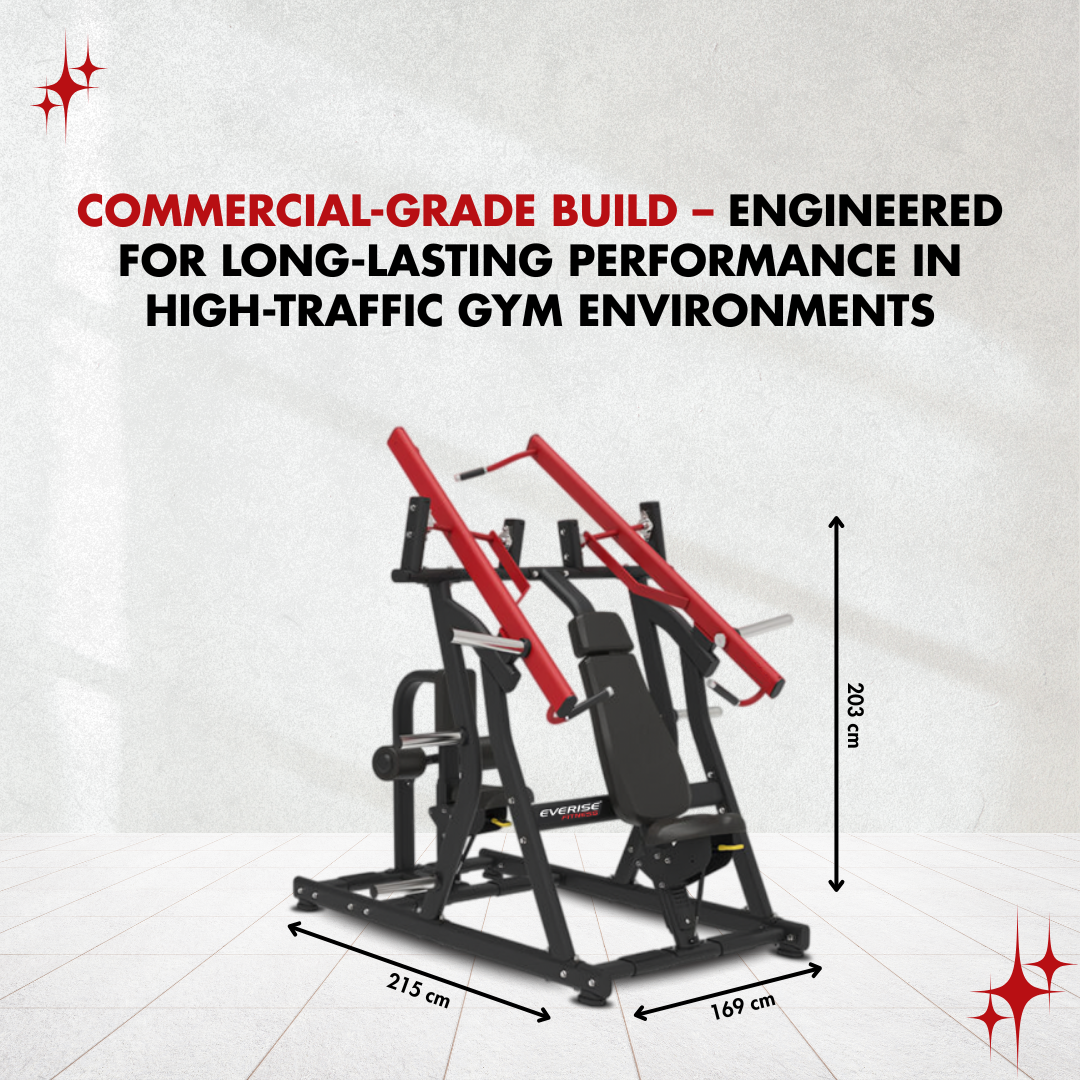The plate-loaded resistance delivers consistent and scalable intensity, making it suitable for beginners building foundational strength as well as advanced users pushing heavier loads.
