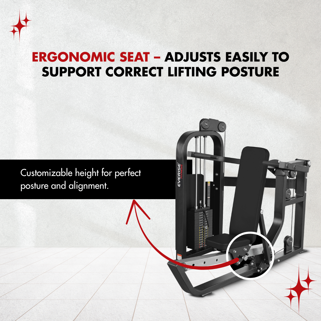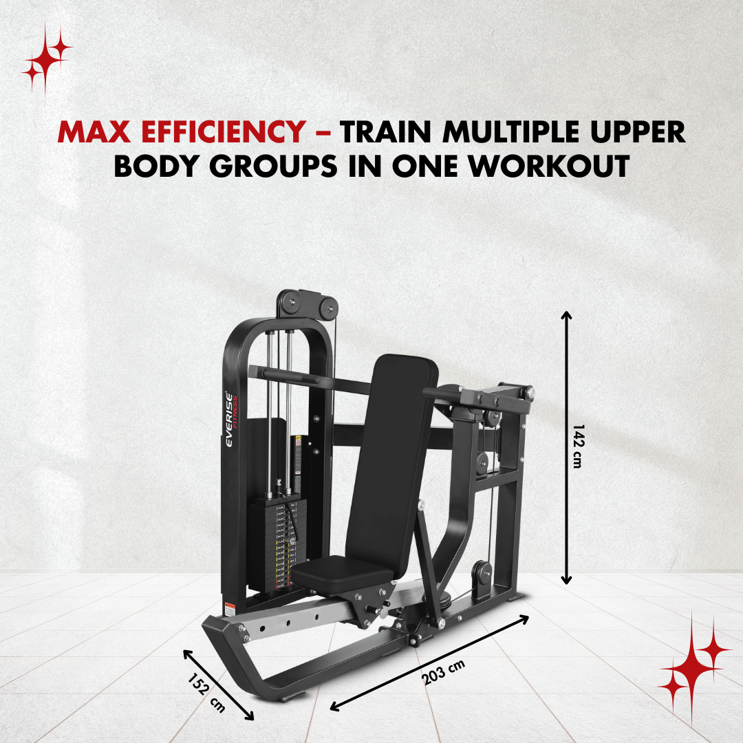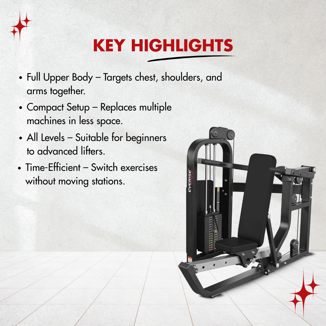 The Multi Press features 3 exercises: Bench Press, Incline Press and Shoulder Press. Both the machine arm and seat are adjustable for each exercise. Multiple hand grips make it easy to find a comfortable starting position.